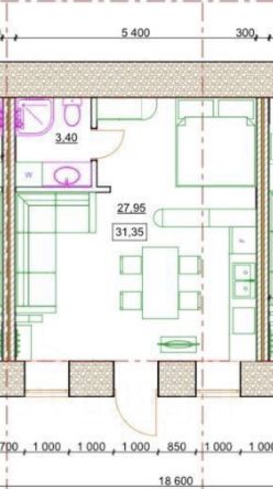 Общая площадь: 31,35 м²