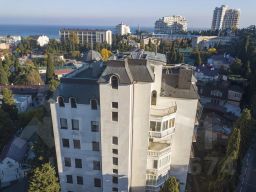 Квартира спроектирована с учетом всех современных требований. В ней есть эркерное помещение с купольным потолком и вторым светом, а также выход на собственный мезонин с потрясающим видом на Ялту, море и горы.