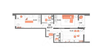 Общая площадь63,17 м²