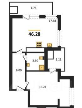 Общая площадь46,28 м²