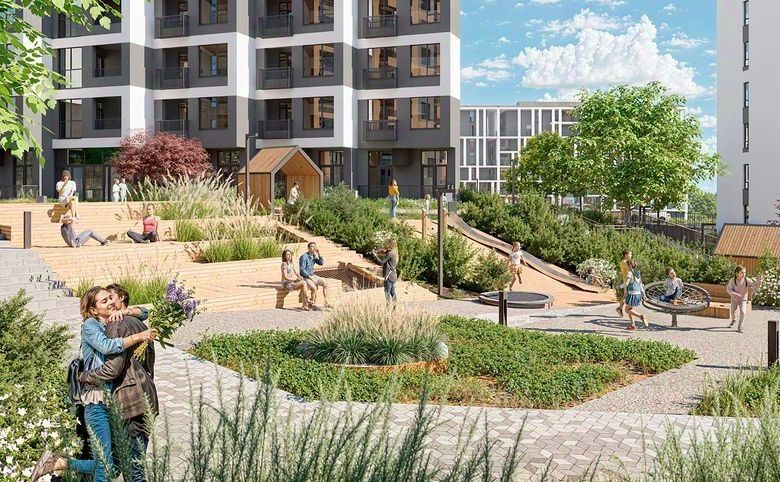 • Концепцию закрытых дворов без автомобилей для безопасности и комфорта