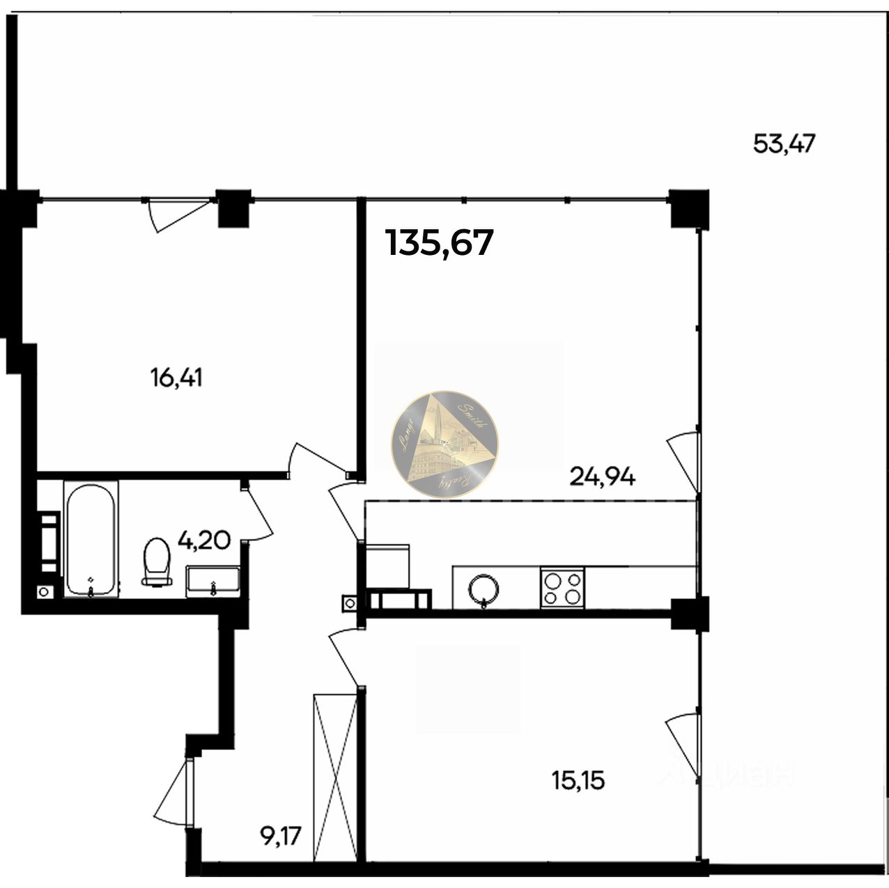 - Общая площадь квартиры 135.67 м2