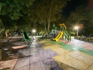 Рядом Комсомольский парк с аттракционами для детей и спортивными площадками.