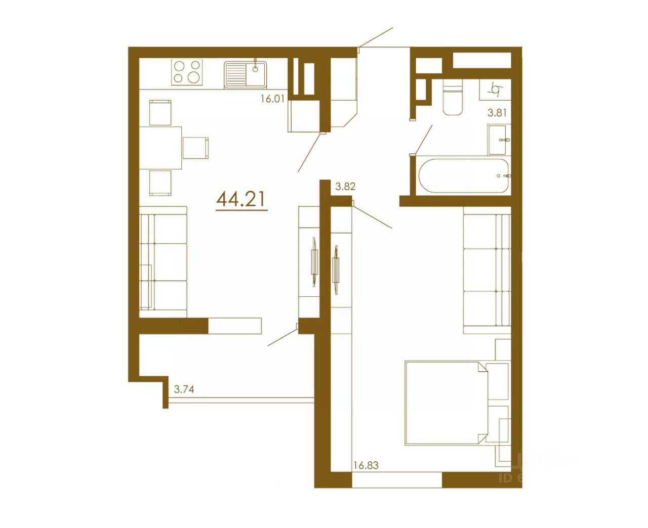 Общая площадь44,21 м²