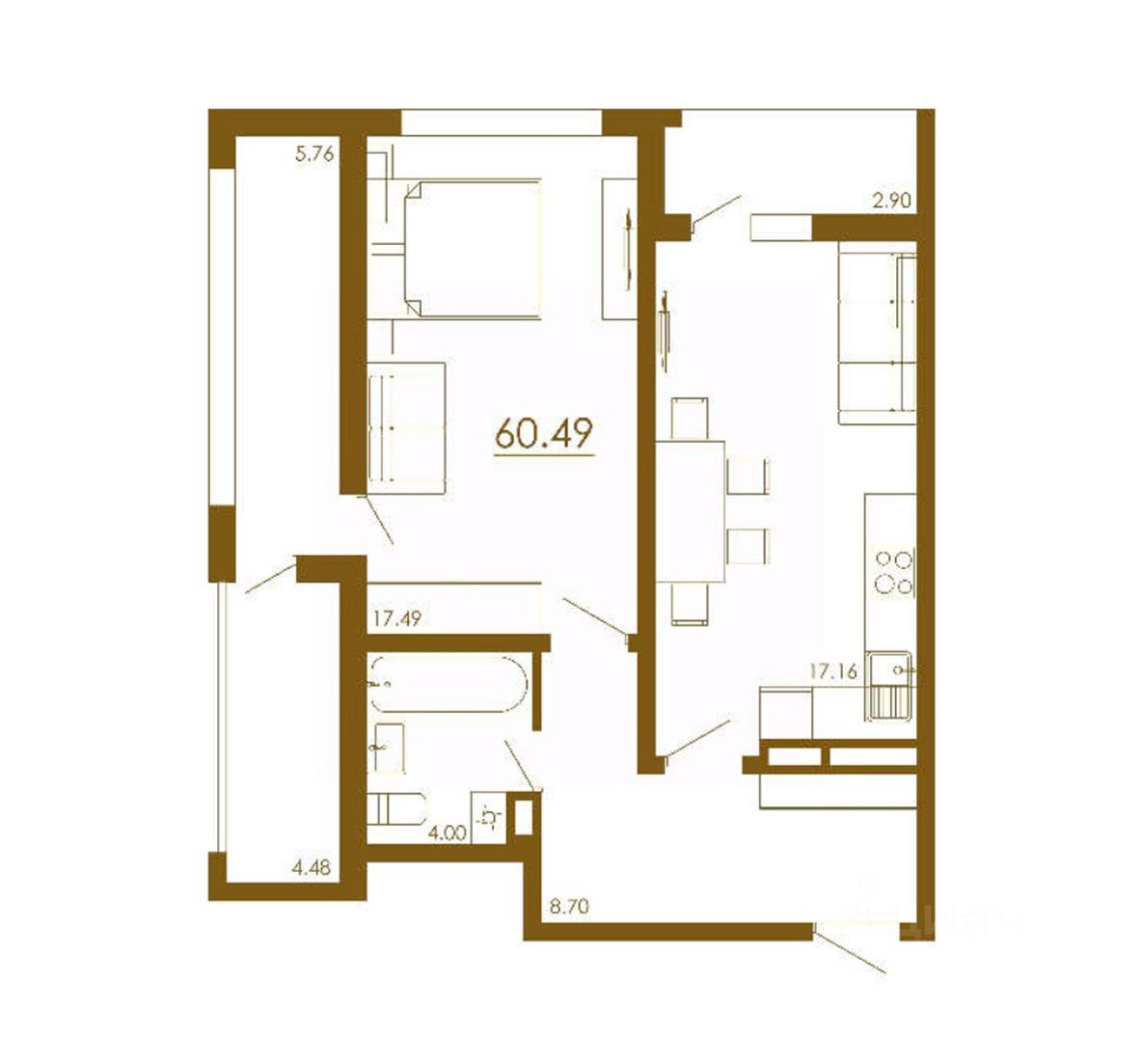 Общая площадь60,49 м²