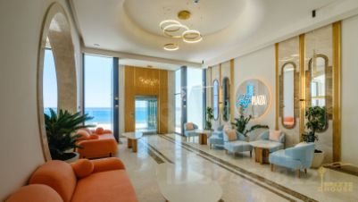 На первом этаже свой тренажерный зал, салон красоты, а также пляжный комплекс Sky Beach — это эстетичное пространство для отдыха. Взрослым предлагается наслаждаться освежающими коктейлями у бара с видом на бассейн и море или расслабиться в уютной зоне для кальяна, утопая в мягких подушках.