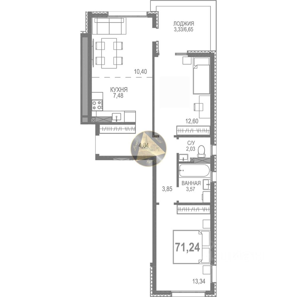 - Общая площадь квартиры 71.24 м2
