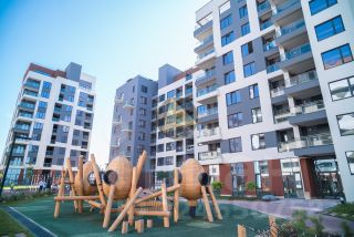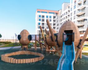 - В составе комплекса запроектированы школа и детский сад, обустроены игровые комплексы, приватные внутридворовые зоны, а также озеленение с системой автополива.
