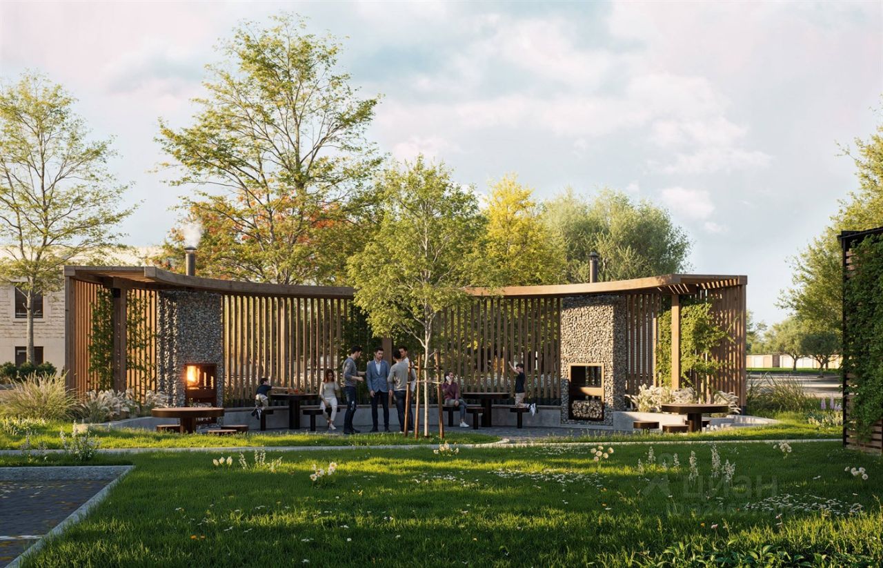 Ландшафтный дизайн выполнен командой специалистов: крупномерные деревья, кустарники, геопластика — территория зелёная и гармоничная.