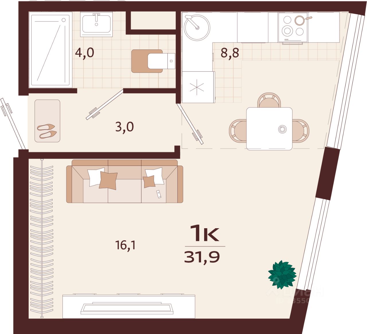 Продаётся 1-комнатная квартира в строящемся доме (Корпус 1), срок сдачи: II-кв. 2027, общей площадью 31.9 кв.м., на 2 этаже. Жилой комплекс бизнес-класса "РОЯЛТА" от застройщика "ГК ТОЧНО" в городе Ялта Республики Крым на улице Спендиарова.