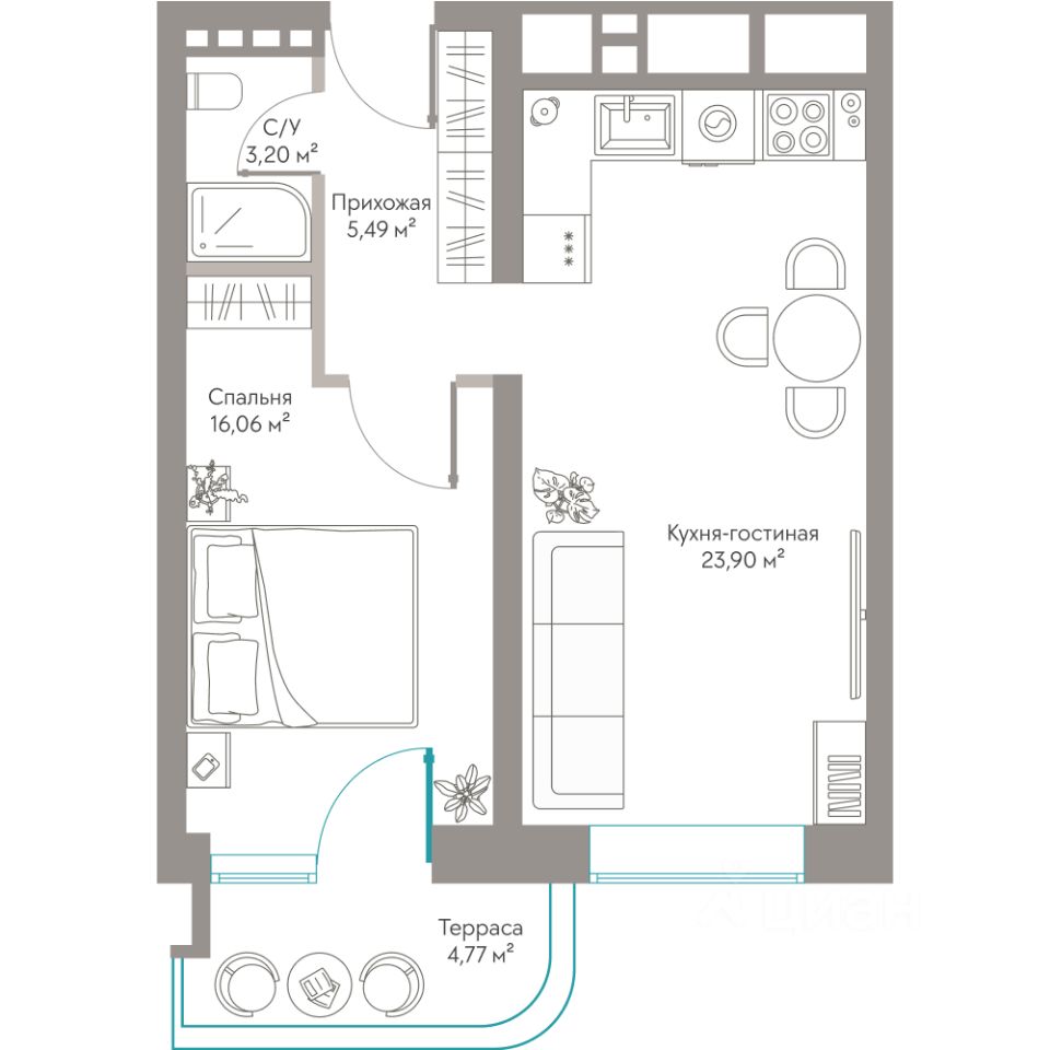 Продаются Апартаменты площадью 53,42 м²с приватной террасой, захватывающим видом на