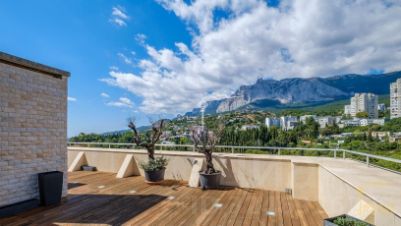 Продается пентхаус с дизайнерским ремонтом и просторными видовыми террасами в элитном жилом комплексе "Александрия" в Гаспре.