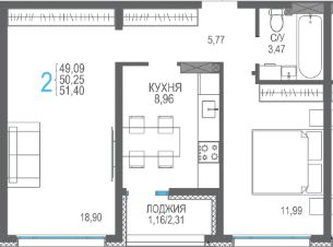 Общая площадь51,4 м²
