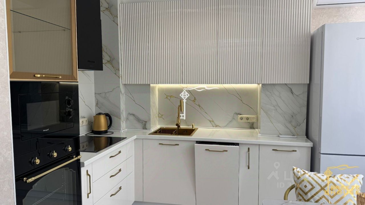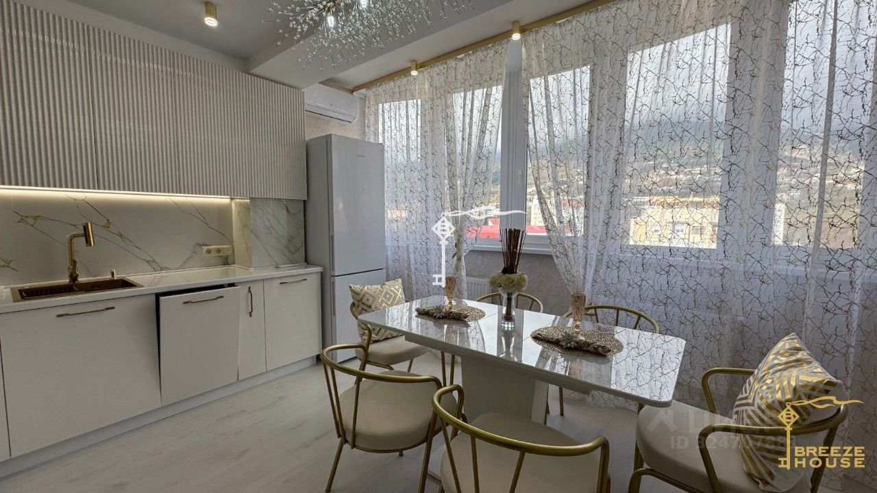 Интерьер выдержан в спокойной естественной цветовой гамме, использованы качественные отделочные материалы, из окон виды на горы и город. Квартира полностью оборудована всей необходимой мебелью и техникой.