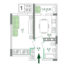 Общая площадь37,8 м²