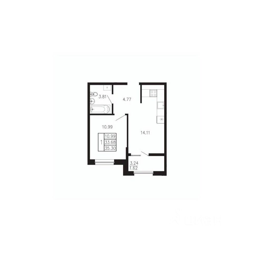 Общая площадь35,3 м²