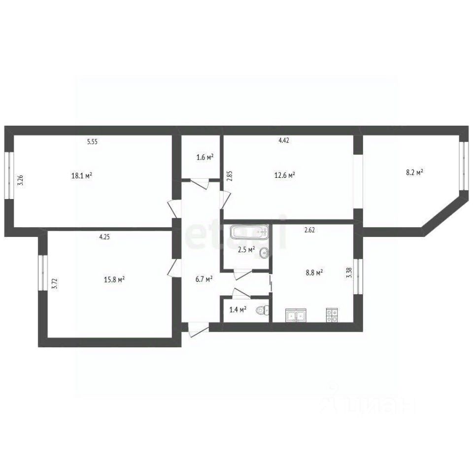 Продам просторную трёхкомнатную квартиру общей площадью 75,7 кв. м. в городе Саки, Крым.