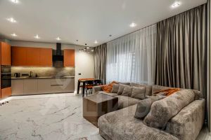 Формат: 2-комнатная + кухня-гостиная (фактически евро-двушка/трешка): мастер-спальня + ещё одна спальня/комната, кухня-гостиная, гардеробная, отдельная постиранная комната, гостевой санузел.