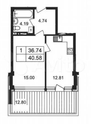 - Санузел: 4,19 м²