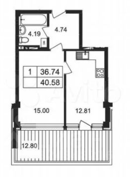 - Жилая: 36,74 м²