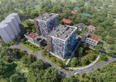 Комплекс состоит из двух 9-этажных жилых зданий и двух бизнес-объектов, образующих единый ансамбль. Здесь предусмотрены подземный паркинг, коммерческие площади, келлеры, стильные парадные и индивидуальные планировки.