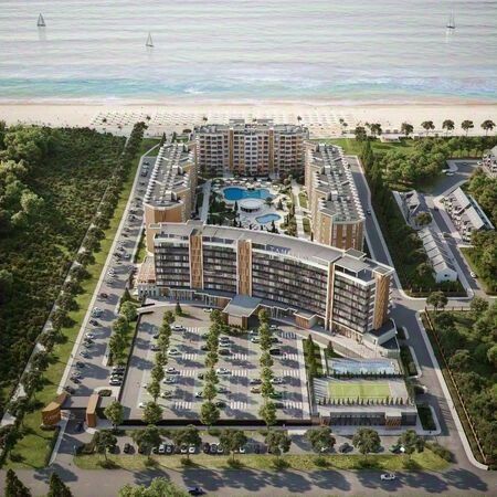 На первой береговой линии Черного моря продается апартамент площадью 123.45 кв. м без отделки. Апартамент находится в апарт-комплексе премиум-класса Tamerun Grand Mirmax 5*, между городами Евпатория и Саки от федерального застройщика ГК "Развитие".