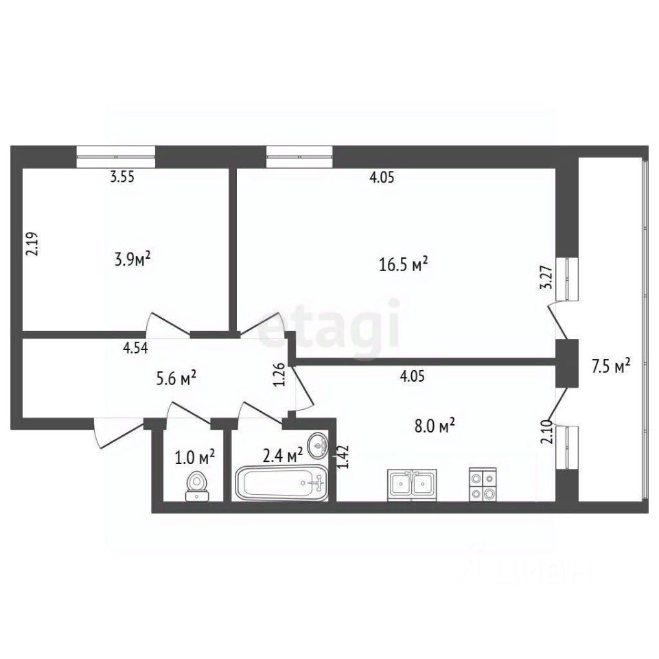 Двухкомнатная квартира 43,3 кв.м. Лоджия ( +7,5 кв.м.), раздельный с/у. В цокольном помещении выделена кладовая 5 кв.м.