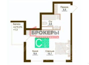 -Общая площадь - 35,2 м2