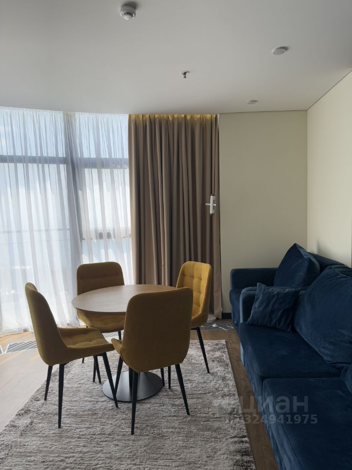 Формат апартаментов — евродвушка (просторная кухня-гостиная и отдельная спальня).