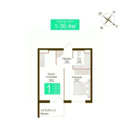 Продаётся 1-комнатная квартира в строящемся доме (Дом 7к2), срок сдачи: II-кв. 2027, общей площадью 33.5 кв.м., на 9 этаже. УМНЫЙ ЖИЛОЙ КОМПЛЕКС