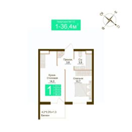 Продаётся 1-комнатная квартира в строящемся доме (Дом 7к2), срок сдачи: II-кв. 2027, общей площадью 33.5 кв.м., на 10 этаже. УМНЫЙ ЖИЛОЙ КОМПЛЕКС