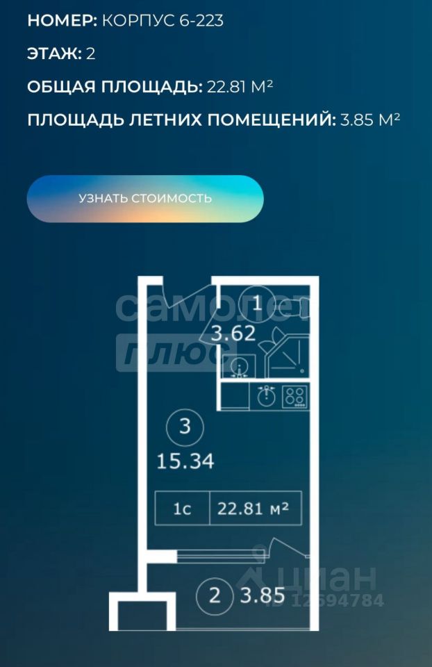Арт. 127154368 В продаже апартаменты студийного типа в туристической-рекреационном комплексе Skysoul Resort общей площадью 22.17м2