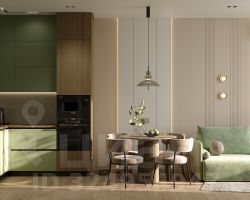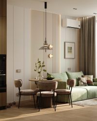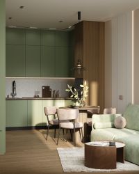 Четкое зонирование выделяет отдельную уединенную спальню, светлое объединенное пространство кухни-гостиной, где есть место и для приготовления любимых блюд, и для отдыха на удобном диване и совмещенный санузел.
