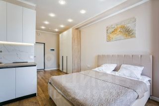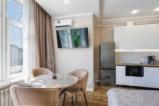 Апартамент укомплектован всей необходимой мебелью и техникой: двуспальная кровать, ТВ, кондиционер, холодильник, электроплита, СВЧ, электрочайник, шкаф, стол и стулья, посуда.