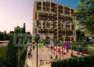 Рядом с домом благоустроенная детская площадка с беседками для отдыха, беговыми дорожками.