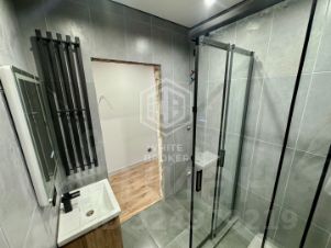 Ремонт выполнен в современном дизайнерском стиле — можно заехать сразу, потребуется только мебель. Совмещённый санузел выполнен из качественных материалов, всё готово к проживанию.