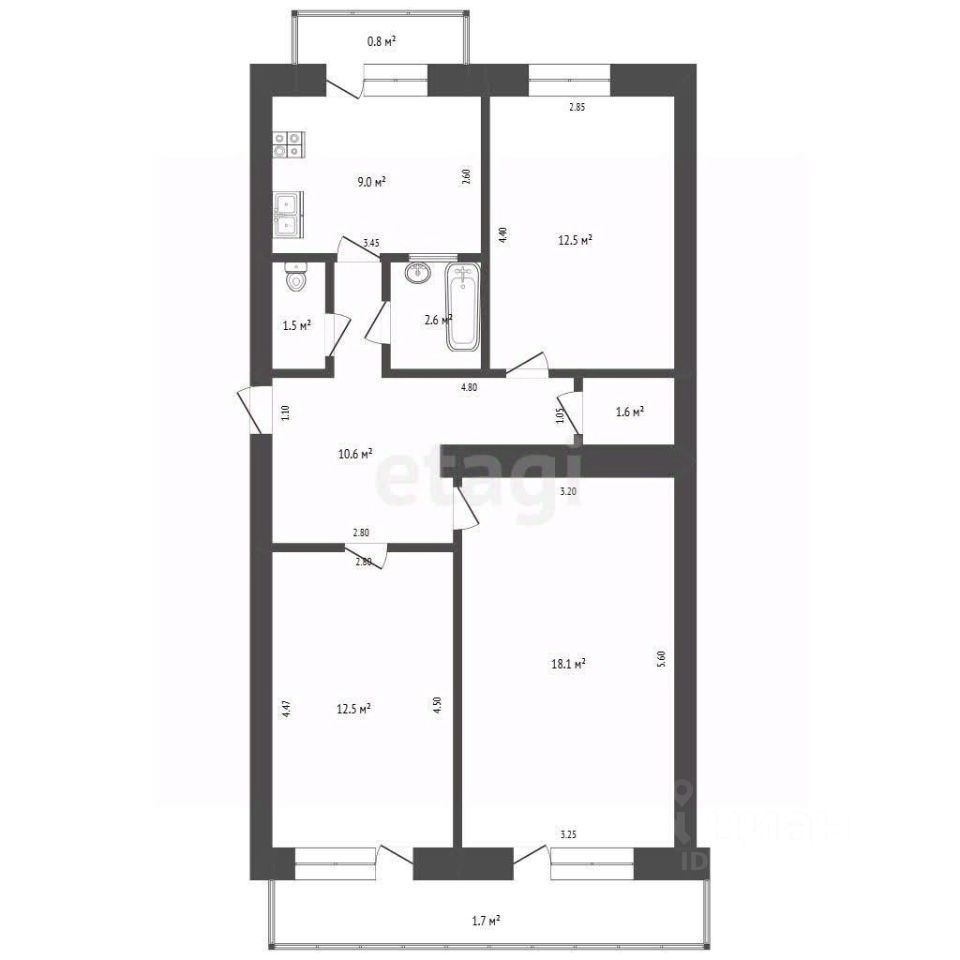 Квартира расположена на 4 этаже жилого дома с функциональной планировкой, общей площадью 68,4 кв. м, включает три изолированные комнаты.