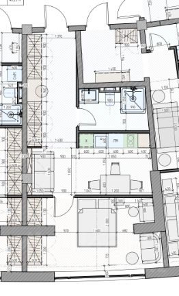 Апартамент свободной планировки из которого можно сделать 2 спальни, кухню, совмещённый санузел и прихожую.