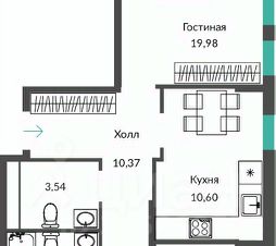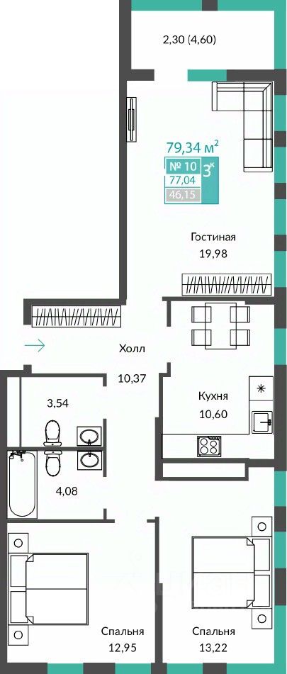 - Просторный холл площадью 10,37 м² создаст первое приятное впечатление, есть возможность разместить большой шкаф для одежды