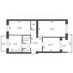 Квартира имеет обычную планировку с тремя спальнями, жилая площадь - 58.5 м², кухня площадью 9.3 м². Высота потолков составляет 2.5 м, что создает ощущение простора и удобства. В квартире никто не проживал ранее, что дает возможность новому владельцу оформить жилое пространство по своему вкусу.