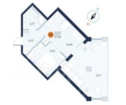 Общая площадь - 57 м² в современном комплексе "Альба дель Маре" в Евпатории.
