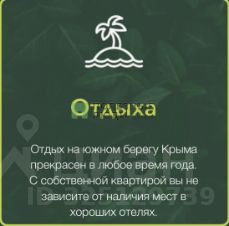 Объект недвижимости расположен в курортной зоне Крыма, в непосредственной близости от акватории Чёрного моря. Расстояние до береговой линии составляет 800 метров.