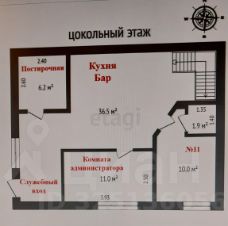 На цокольном этаже имеется бар, кухня, гостиничный номер, комната администратора, постирочная комната со стиральной машиной и сушки белья, душевая, умывальник, унитаз.