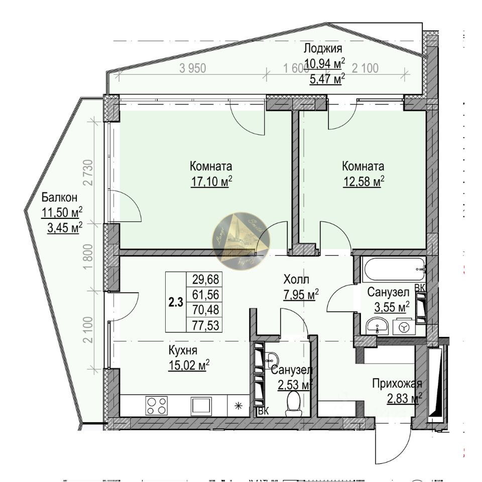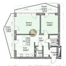 Срочно продаётся 2-комнатная квартира общей площадью 77,53 м2