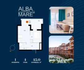 Продаются апартаменты в построенном комплексе. Срок сдачи 4 квартал 2024 года. Alba Del Mare это комплекс апартаментов бизнес-класса с развитой инфраструктурой. Уютные здания переменной этажности строятся в 5 минутах ходьбы (385 метров) от одного из лучших пляжей Евпатории "Super Aqua Beach". Широкая береговая линия, места для активного отдыха и зоны релакса позволят насладиться отдыхом на любой вкус. Архитектурное решение комплекса создает истинное ощущение Средиземноморья и присутствия на дорогом курорте: скатные черепичные крыши, козырьки и навесы-перголы, арочные завершения проемов, цветовая палитра отделки и фасадов, где используются оттенки желтого, охры, терракоты и бежевого. Переменная этажность здания формирует камерность проекта, создавая прекрасные видовые характеристики для каждого апартамента. Просторные террасы с видом на море, патио с собственным выходом к бассейну на первых этажах комплекса, детская и спортивная площадки, ландшафтный дизайн здесь все создано для роскошного отдыха и расслабления. Территория комплекса апартаментов закрыта и находится под круглосуточным видеонаблюдением, что позволит резидентам и гостям чувствовать безопасность проживания. Концепция комплекса: комфорт проживания с первых дней заселения. Реализация апартаментов осуществляется с полной отделкой под ключ. Собственники апартаментов имеют возможность поручить управление недвижимостью профессиональному оператору, что позволит получать стабильный доход. Автономная газовая котельная позволит не зависеть от внешних отключений отопления., парковочные места на закрытой территории комплекса обеспечат безопасность вашему автомобилю, система центрального кондиционирования создаст комфортную температуру в каждом номере. Жилой комплекс реализуется в соответствии с 214 ФЗ.