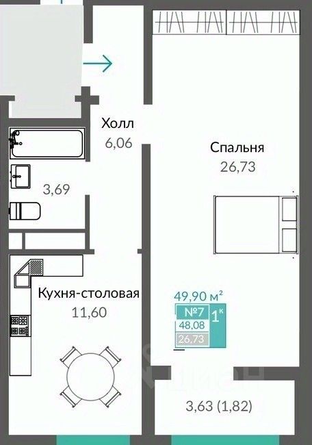 Продаётся 1-комнатная квартира в строящемся доме (Корпус 1), срок сдачи: I-кв. 2026, общей площадью 49.9 кв.м., на 2 этаже. Новый жилой комплекс "Шалфей" от застройщика "Монолит" расположен по адресу: Россия, Республика Крым, Симферополь, проспект Александра Суворова