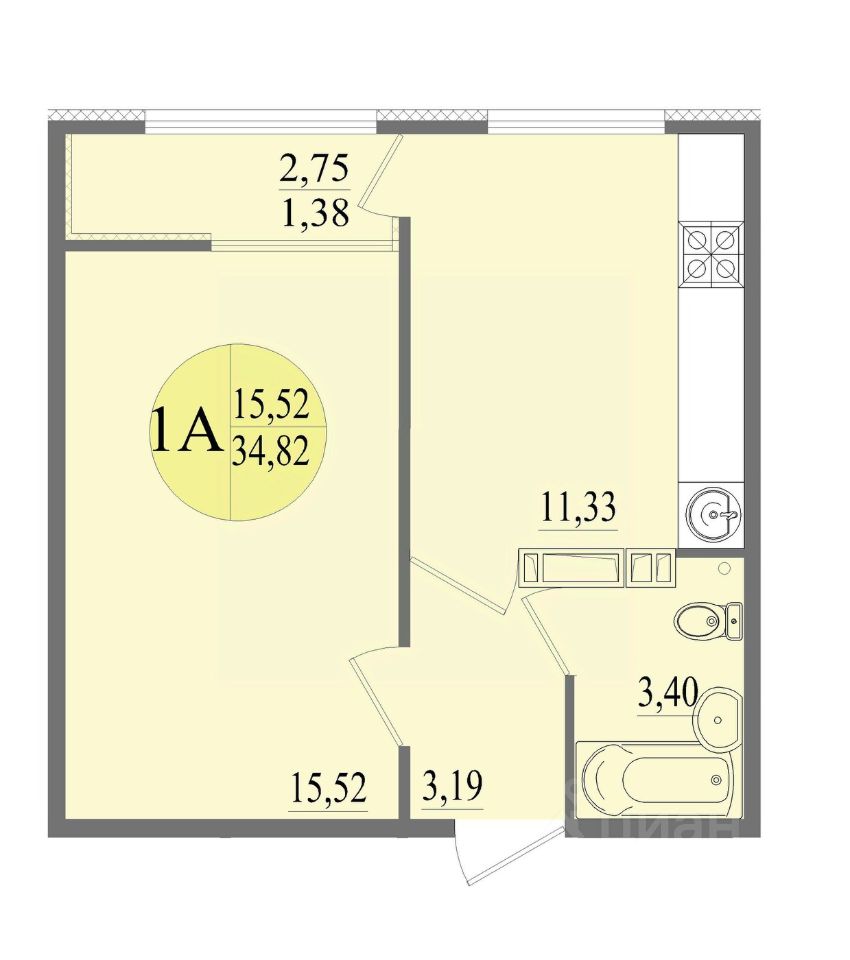 Общая площадь34,82 м²