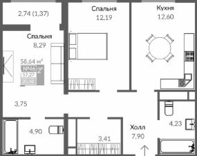 Продаётся 2-комнатная квартира в строящемся доме (Корпус 4), срок сдачи: I-кв. 2026, общей площадью 58.64 кв.м., на 7 этаже. Новый жилой комплекс "Шалфей" от застройщика "Монолит" расположен по адресу: Россия, Республика Крым, Симферополь, проспект Александра Суворова