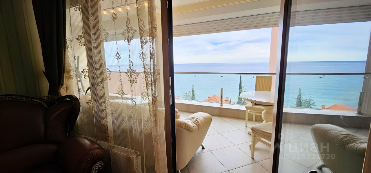 Апартаменты представлены к продаже полностью меблированы и оснащены всей необходимой техникой. Выполнен косметический ремон. Установлены панорамные окна в пол. С каждой комнаты есть выход на просторную балкон/терассу откуда открывается панорамный неперекрываемый вид на акваторию Чёрного моря и Крымское юго- восточное побережье, от Алушты до мыса Меганом.