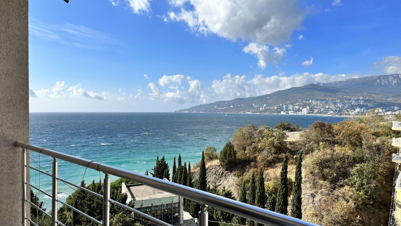 Из окон открывается вид на море и Ялту, а балкон идеален для утренних завтраков на свежем воздухе